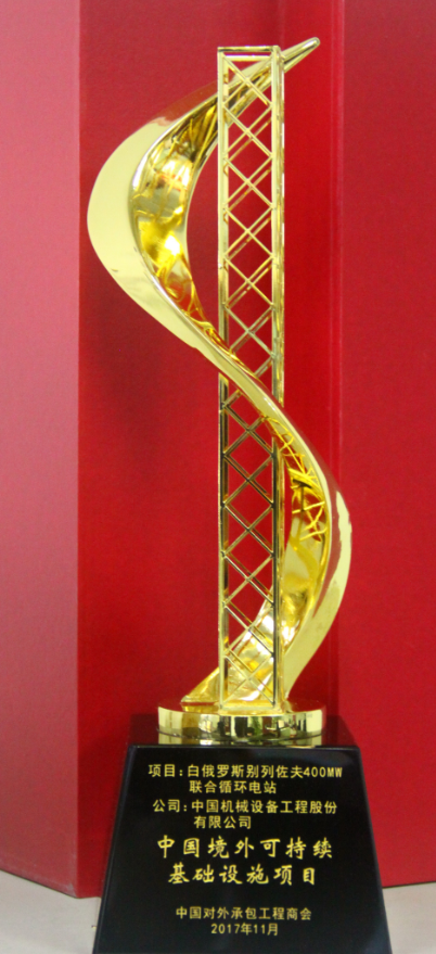 12月1日,在中国承包商会第三次全体会议上,中国对外工程承包商会对荣获“中国境外可持续基础设施建设项目”的企业颁奖,CMEC白俄别列佐夫项目荣获2017年度中国境外可持续基础设施建设项目奖,体现了在海外积极践行社会责任、践行可持续发展的责任和担当。
