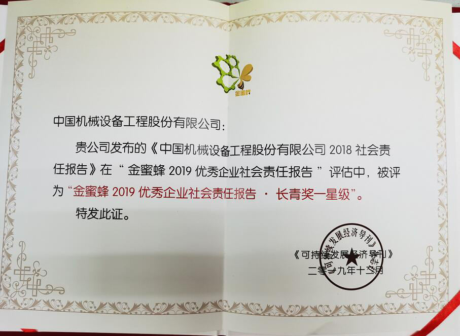 CMEC社会责任报告荣获金蜜蜂长青奖
